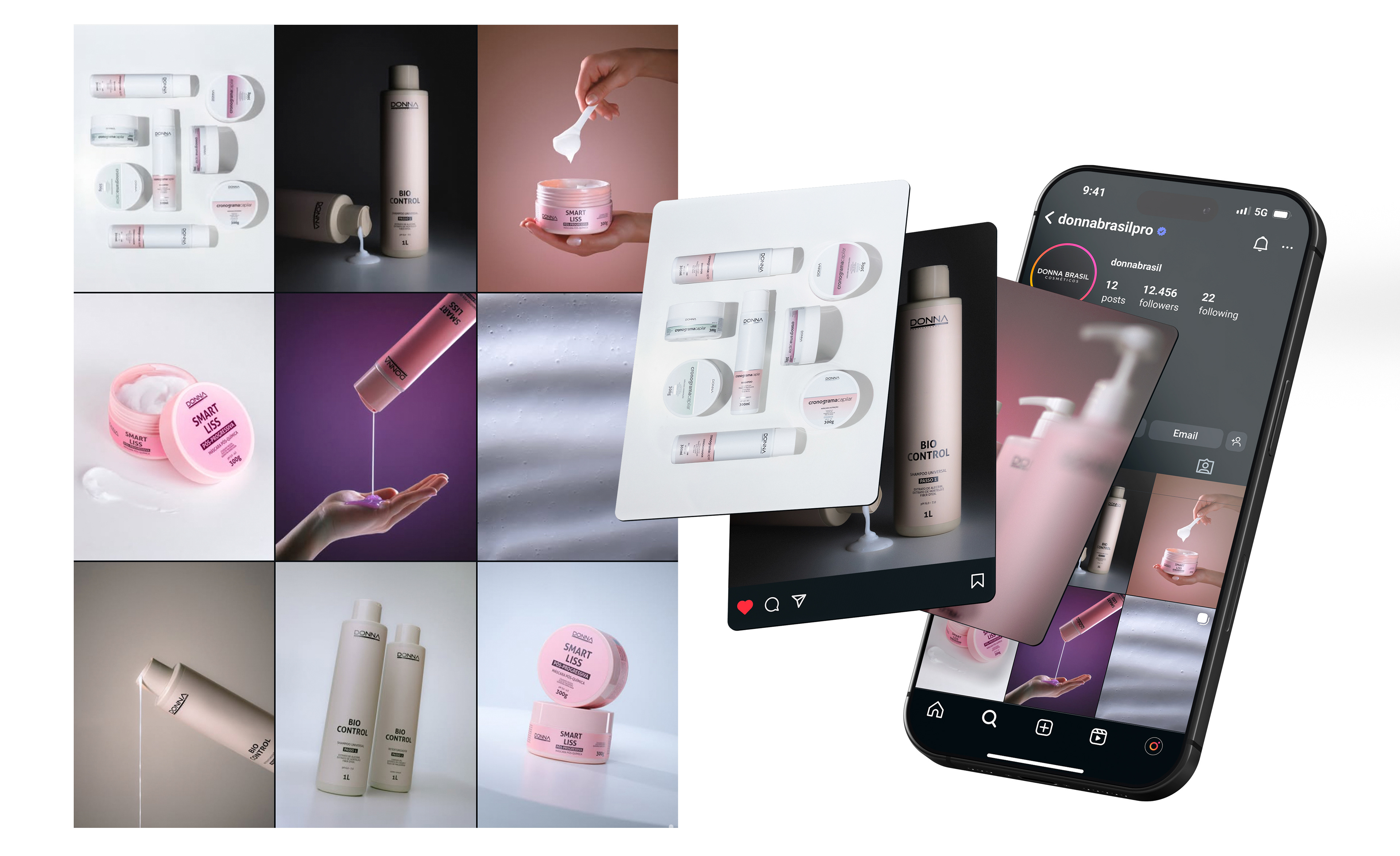 Nas composições, priorizei o minimalismo — característica presente nas embalagens — e, por se tratar de um dos primeiros materiais da marca, optei por um básico bem executado, mas com o toque de identidade que prezo em todos os meus trabalhos.